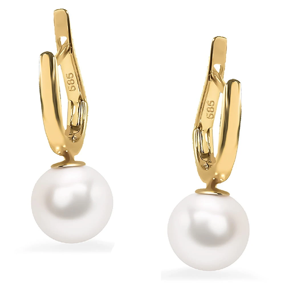 Złote Kolczyki Naturalne Okrągłe Perły Próba 585