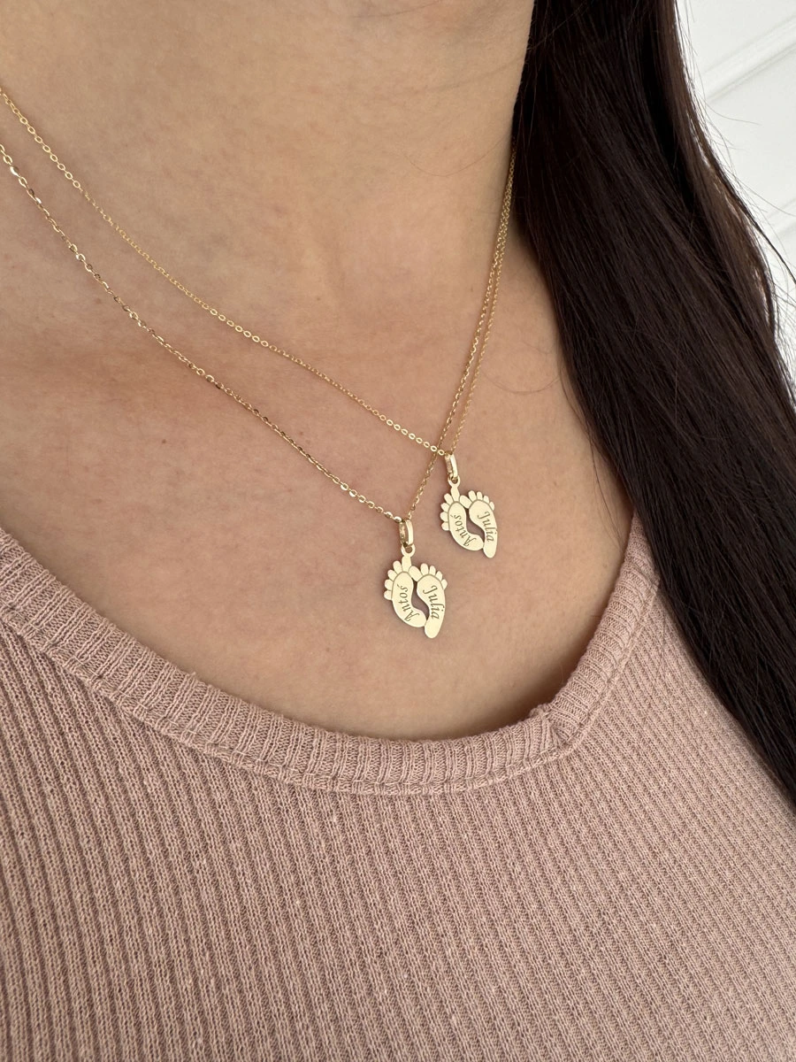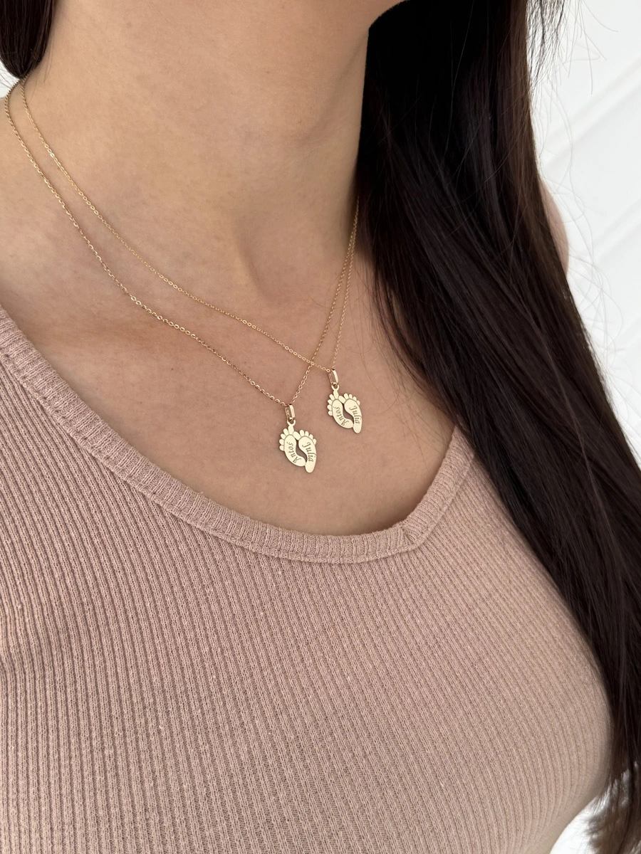 Złoty naszyjnik stópki o wyjątkowym kształcie i z możliwością graweru to coś więcej niż biżuteria – to symbol miłości i czułości. Stworzony dla mam, które myślą o swoich najbliższych każdego dnia. Subtelnie uzupełni stylizację i stanie się cenną pamiątką na lata.