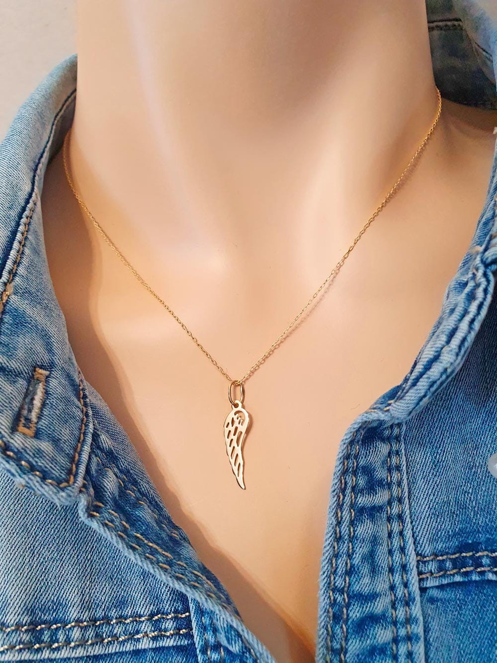 Ta oryginalna damska zawieszka „skrzydło” ze złota 585 to absolutny hit pośród detali biżuteryjnych. Anielskie motywy bardzo często wybierane są przez panie, dlatego, jeśli nie masz pomysłu na prezent – ta biżuteria to strzał w dziesiątkę! Subtelne ażurowe wzornictwo i ciepły blask drogocennego kruszcu to niezwykle eleganckie połączenie. Doceni je każda wielbicielka dobrego stylu. Jeśli interesuje Cię wariant złotej zawieszki damskiej z grawerem – sprawdź inne oferty w naszym sklepie. Połyskujący szlachetnie wisiorek w kształcie skrzydła wspaniale pasować będzie zarówno do eleganckiej koszuli, kwiecistej sukienki, jak i ulubionego t-shirtu oraz jeansów. To niezwykle uniwersalna ozdoba, którą warto mieć w szkatułce z biżuterią. Kup u nas dodatkowo łańcuszek i stwórz gotowy do założenia naszyjnik!