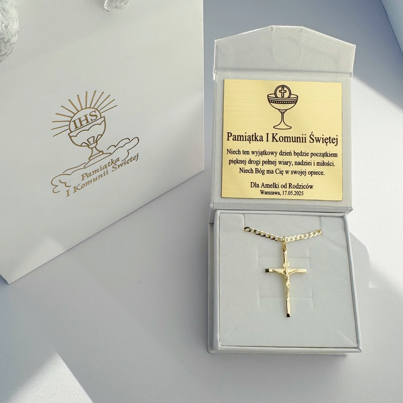 Idealne jako prezent na Chrzest lub I Komunię Świętą.
