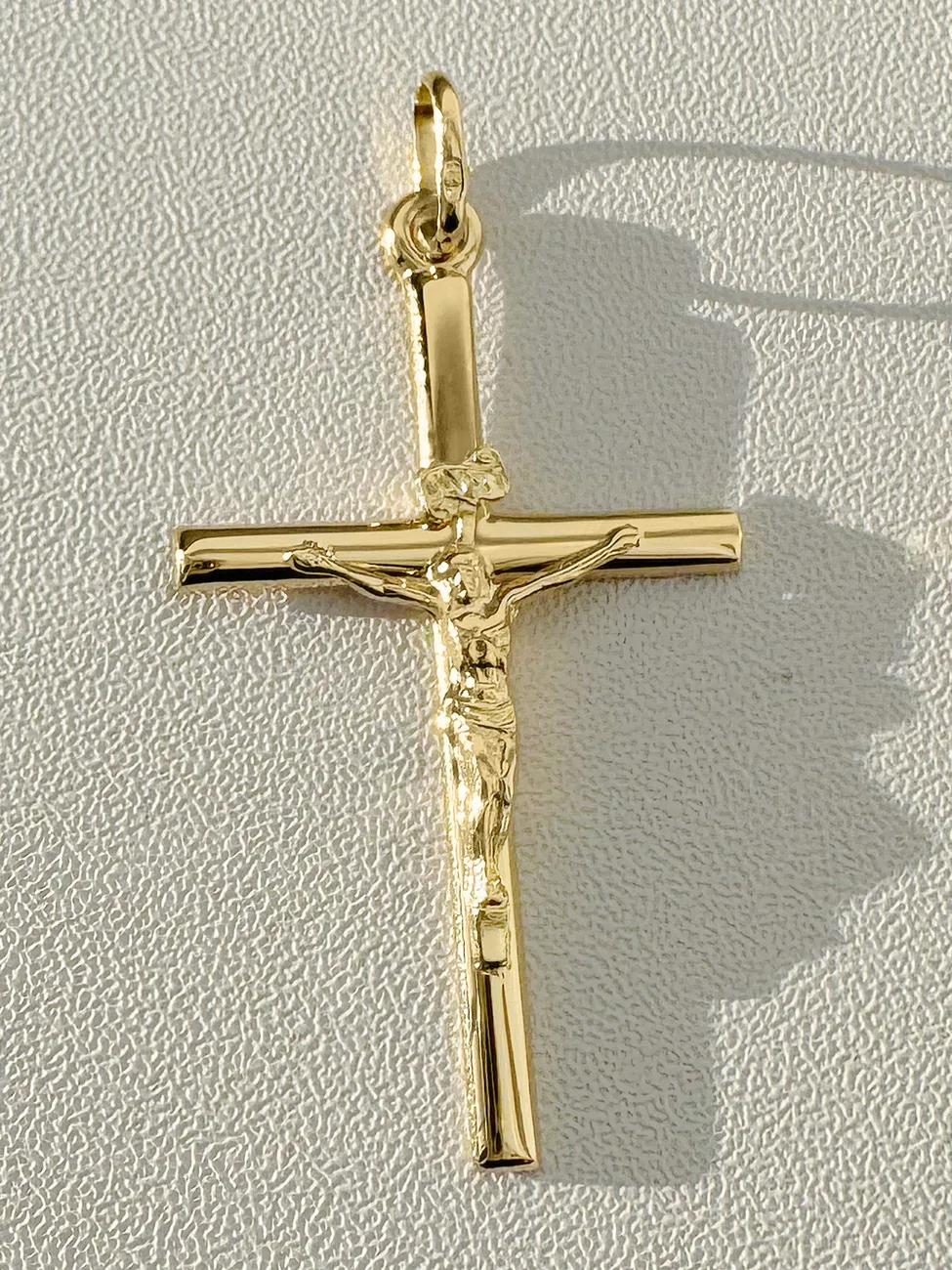 Złoty Krzyżyk Duży z Jezuskiem Zawieszka Próba 585